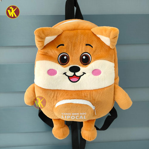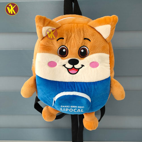 Balo gấu bông Shiba dễ thương, chất liệu nhung mềm an toàn cho bé. Xưởng Việt Khuê sản xuất & cung cấp sỉ – lẻ, in logo theo yêu cầu, giá tận xưởng, giao toàn quốc.