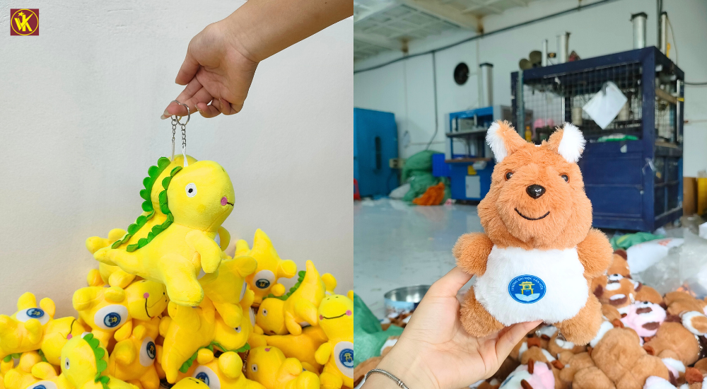 ALT text: Xưởng sản xuất móc khóa gấu bông Việt Khuê quy mô lớn, chuyên nghiệp